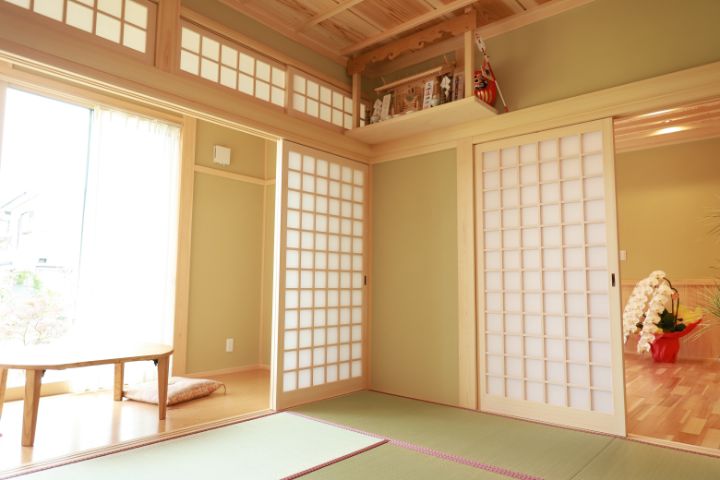 和室には定評があるカナウホーム。 まるで旅館のような和室には、こだわりを尽くした仏壇を置いて、 ポカポカ陽気の日にはここからお庭を眺めるのが楽しいです。