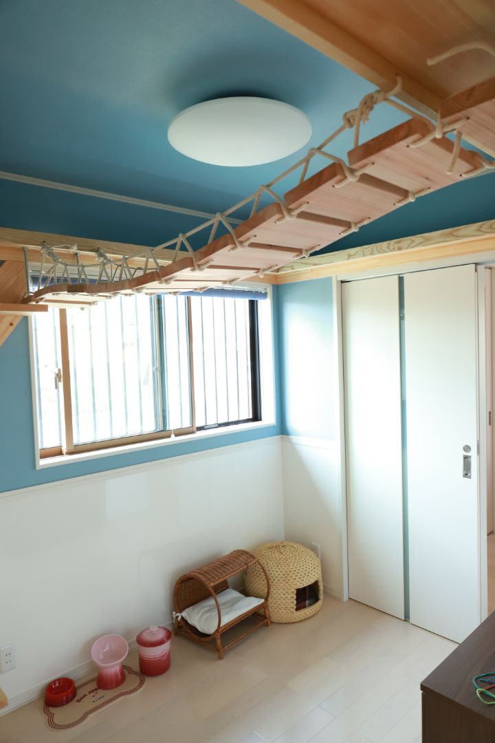 猫にとって危険なものを配置しないシンプルでも仕掛けいっぱい の専用部屋は、遊び心がいっぱい。