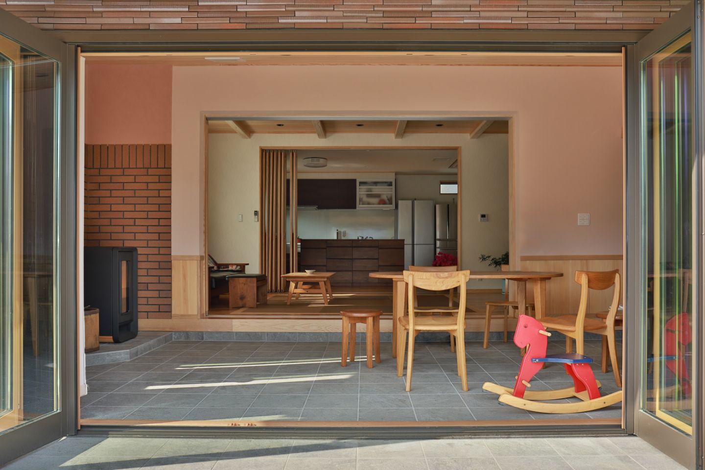 また、家族にとっては広い縁側でバーベキューをしたり、晴れた日に は椅子をもってきて日光浴をしながら読書や音楽をたのしんだりする ようなくつろぎのスペースになります。